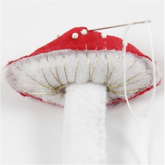 7. Ράψτε με χρυσή κλωστή για να φτιάξετε τα πτερύγια κάτω από το μανιτάρι