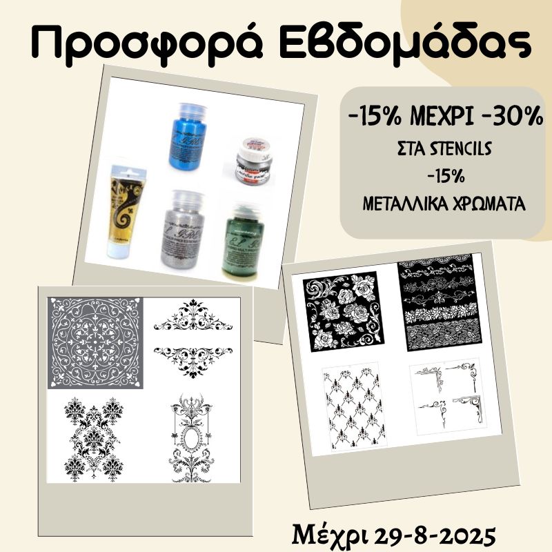 Προσφορά Εβδομάδας – Έκπτωση έως -30% στα Stencils & -15% στα Μεταλλικά Ακρυλικά Χρώματα