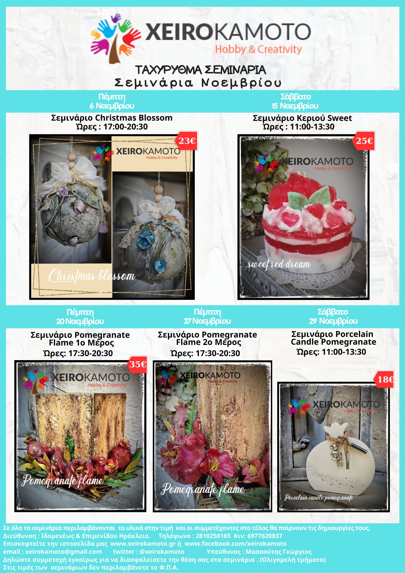 • Ένα εντυπωσιακό διήμερο σεμινάριο για την απόλυτη τεχνική και ένα ξεχωριστό σεμινάριο Porcelain Candle.