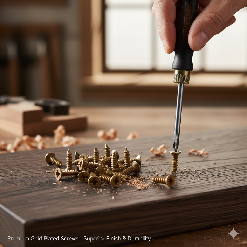 Βίδες σε χρυσή απόχρωση, ιδανικές για διακοσμητικές εφαρμογές και χειροτεχνίες.
