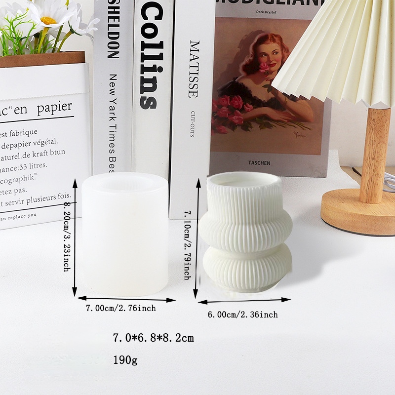 Αποκτήστε αυτό το κομψό Καλούπι Σιλικόνης σε σχήμα Κερί με Ραβδώσεις - ιδανικό για να δημιουργήσετε ντελικάτα και μοντέρνα διακοσμητικά για το σπίτι ή αναμνηστικά! Με διαστάσεις 7x6.8x8.2cm, αυτό το καλούπι είναι το τέλειο εργαλείο για την παραγωγή ομοιόμορφων κομματιών με μινιμαλιστική αισθητική.