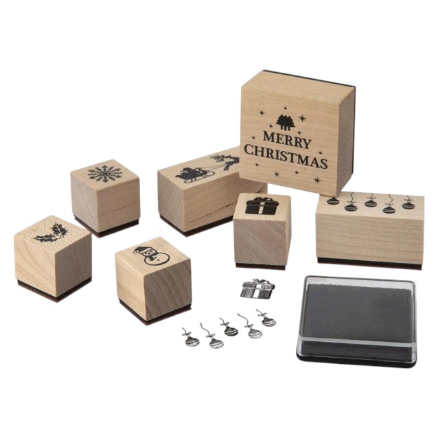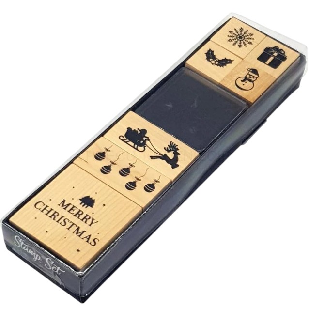 • Σετ 7 Σφραγίδων: Περιλαμβάνει μια ποικιλία από γιορτινά σχέδια, όπως χριστουγεννιάτικο δέντρο, νιφάδα χιονιού, χιονάνθρωπο, δώρο, γκι, χριστουγεννιάτικες μπάλες και την φράση "MERRY CHRISTMAS".