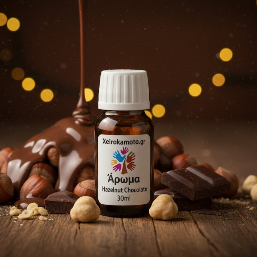 Ανακαλύψτε το πλούσιο και λαχταριστό Άρωμα Hazelnut Chocolate (Φουντούκι - Σοκολάτα) 30ml, ιδανικό για να δώσετε στις χειροποίητες δημιουργίες σας μια γλυκιά, ζεστή και απολαυστική αίσθηση! Αυτό το υψηλής ποιότητας άρωμα είναι ειδικά σχεδιασμένο για να χρησιμοποιείται σε πολλαπλές εφαρμογές: