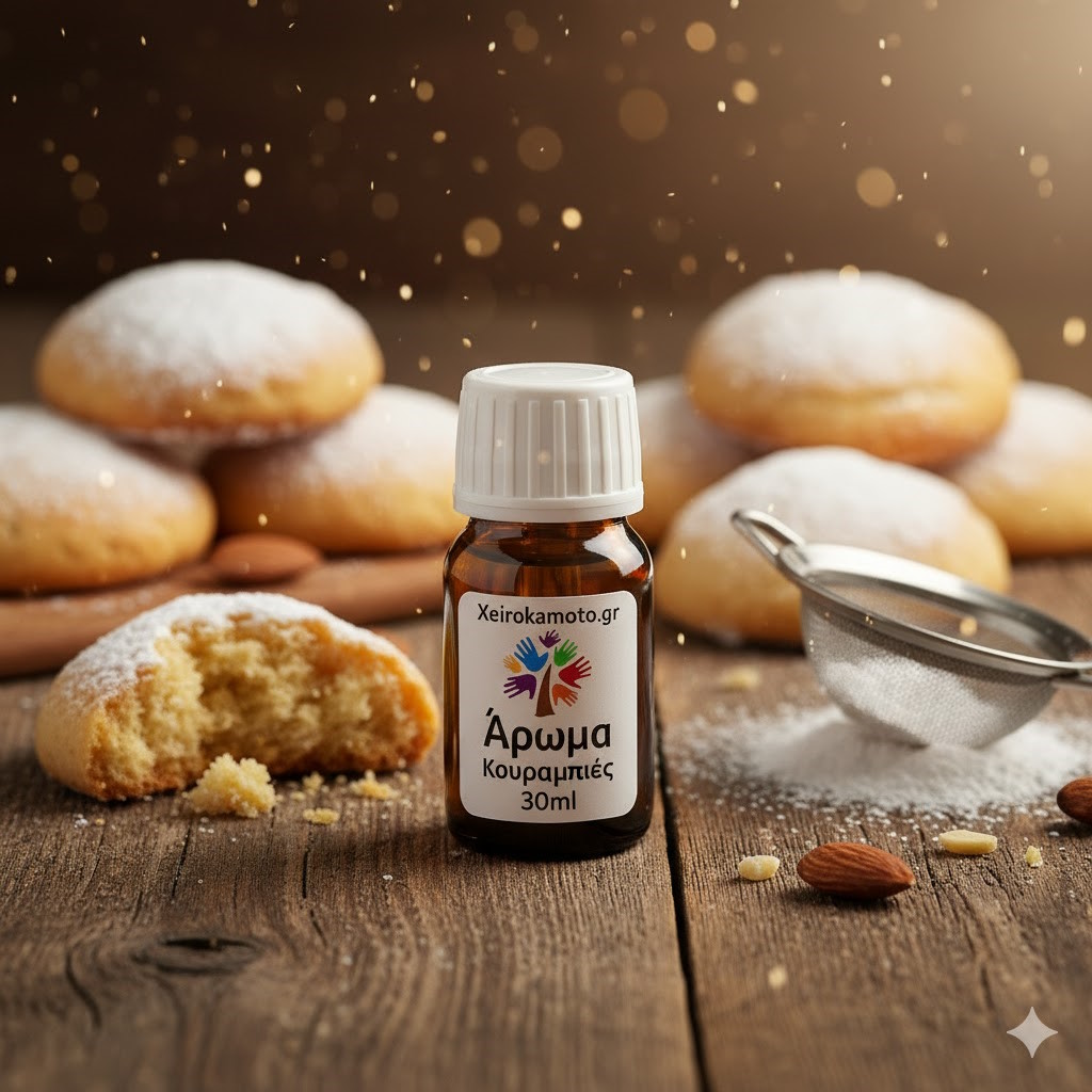 Ανακαλύψτε το πιο γιορτινό και παραδοσιακό άρωμα των ελληνικών Χριστουγέννων με το Άρωμα Κουραμπιές 30ml! Αυτό το μοναδικό άρωμα είναι ειδικά σχεδιασμένο για να δώσει στις χειροποίητες δημιουργίες σας την οικεία, γλυκιά και πλούσια ευωδιά του φρεσκοψημένου κουραμπιέ.