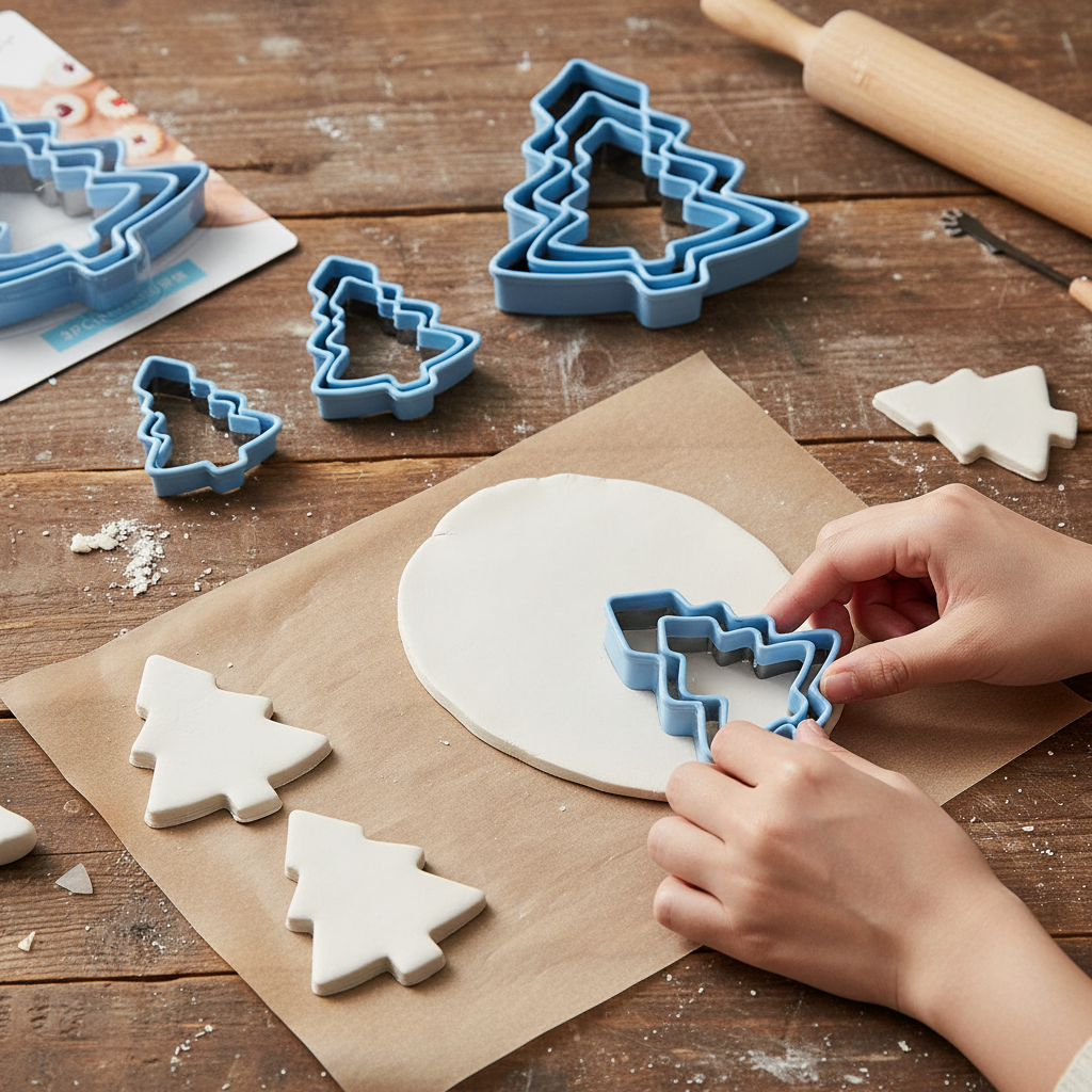 • Ποικιλία μεγεθών: Το σετ περιλαμβάνει τρία διαφορετικά μεγέθη κουπ πατ σε σχήμα χριστουγεννιάτικου δέντρου, επιτρέποντάς σας να δημιουργήσετε μπισκότα με διάφορες διαστάσεις ή ακόμα και εντυπωσιακά στοιβαζόμενα δέντρα.